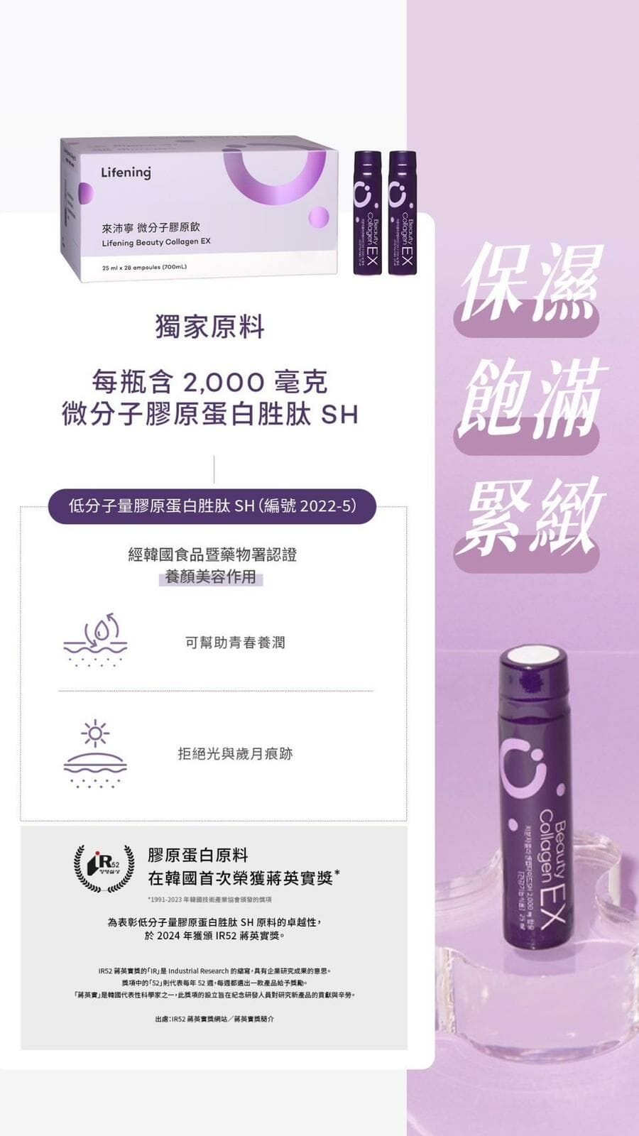 - Recognized by the Ministry of Food and Drug Safety for its skin improvement functionality Individually approved collagen ingredient